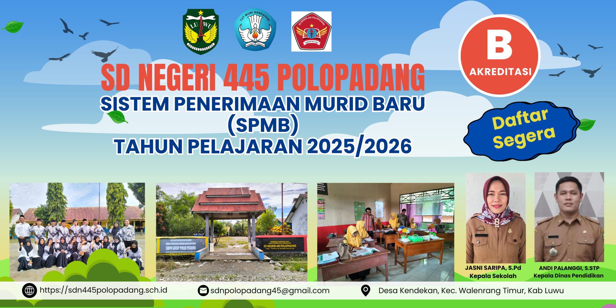 Assalamu'alaikum wr.wb.Puji syukur kepada Alloh SWT, Tuhan Yang Maha Esa yang telah memberikan rahmat dan anugerahNya sehingga website SD Negeri 445 Polopadang ini dapat terbit. Salah satu tujuan dari website ini adalah ...
